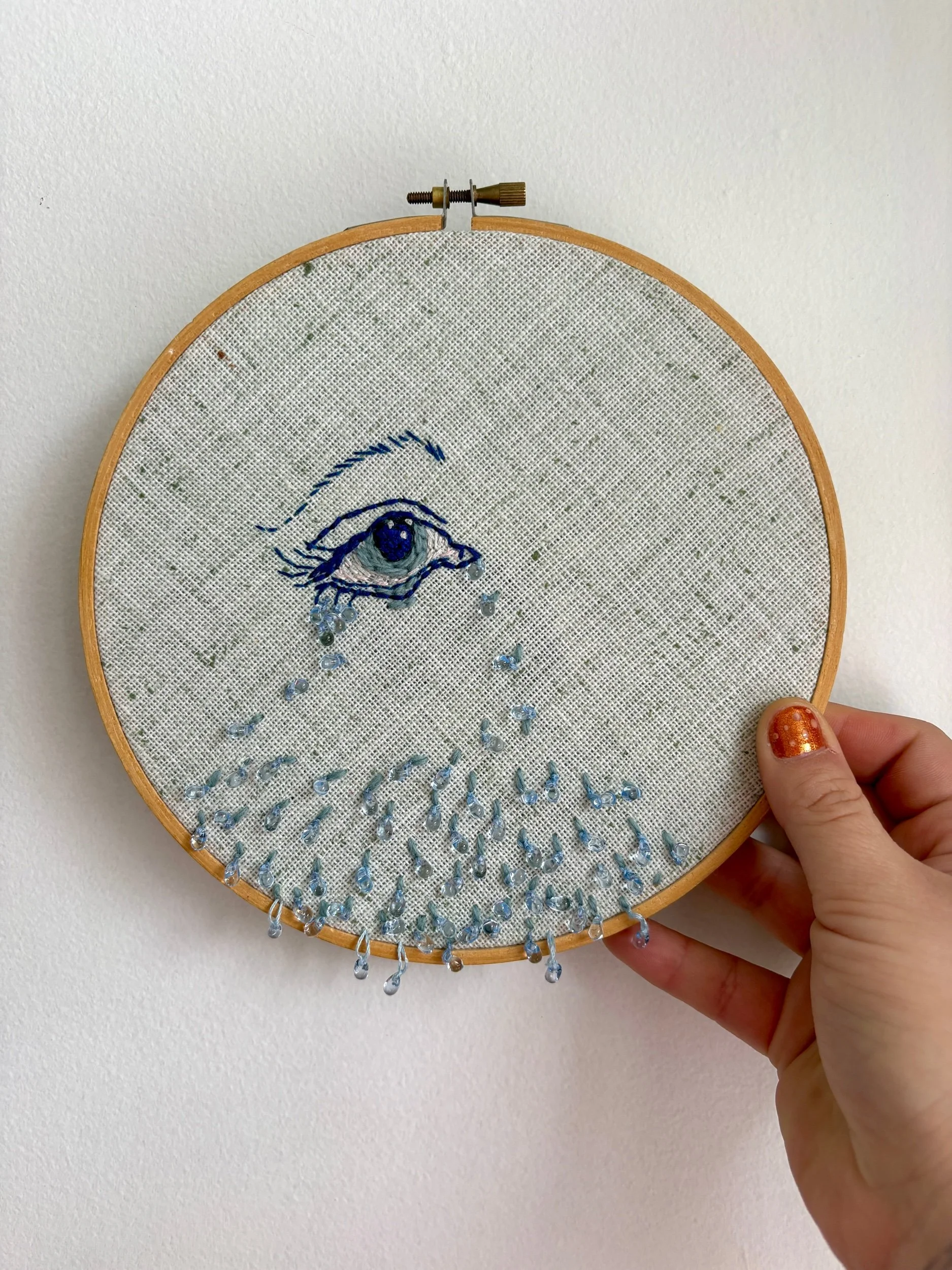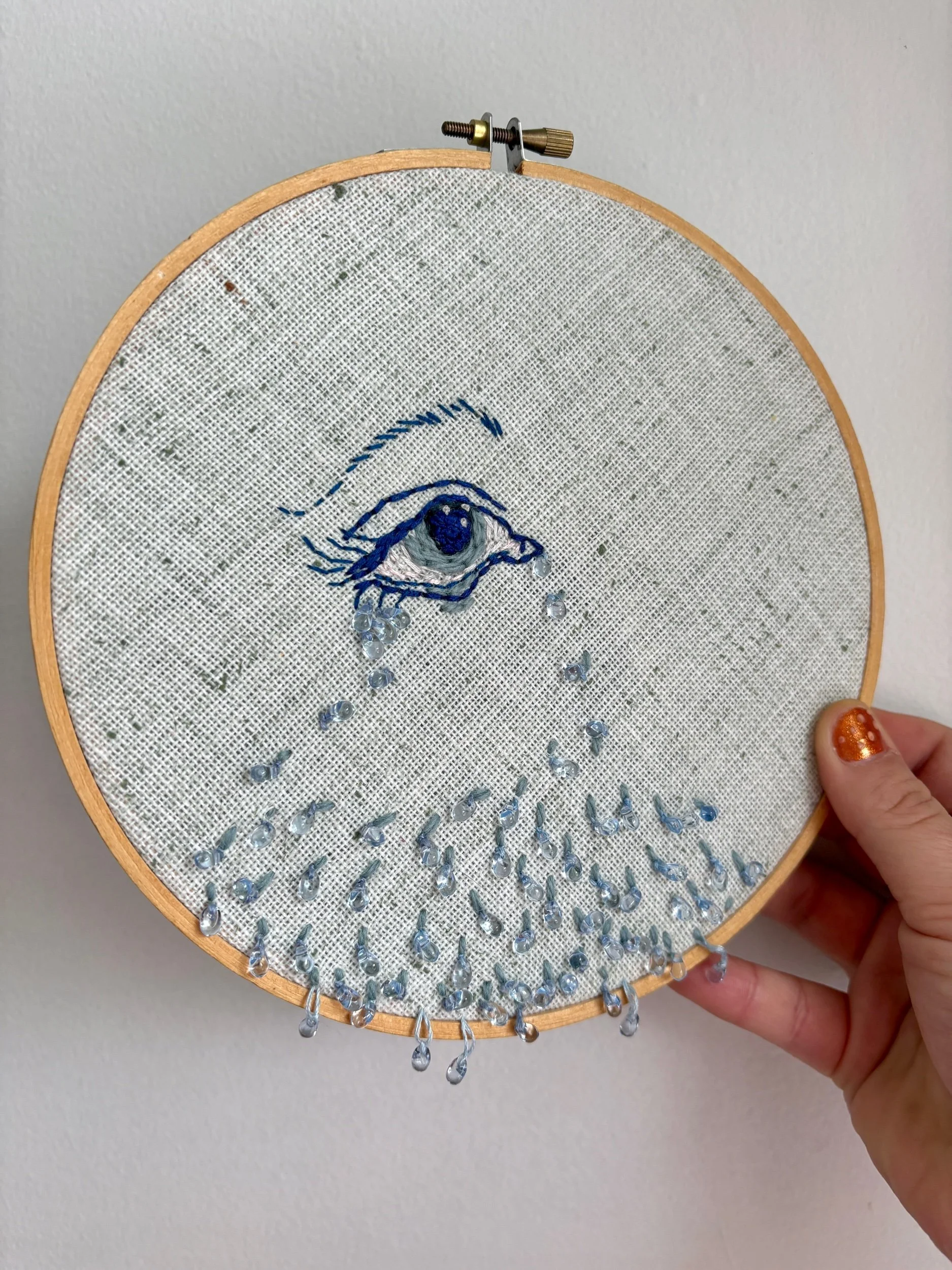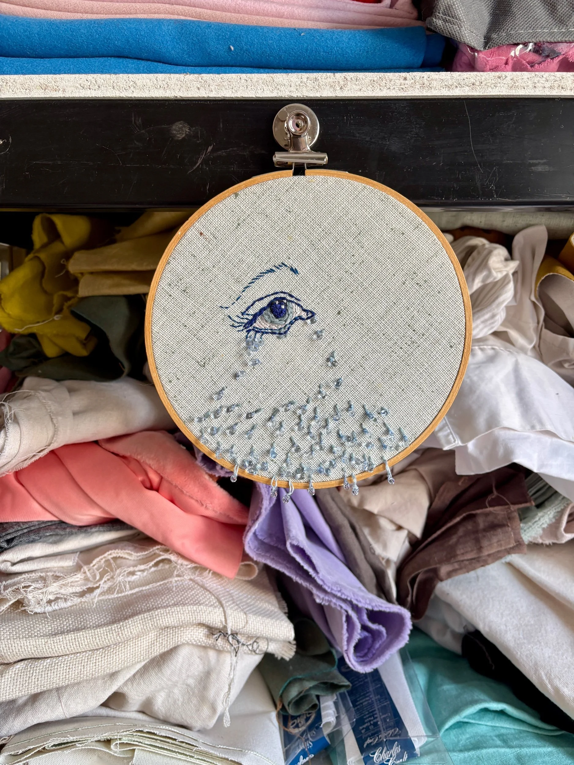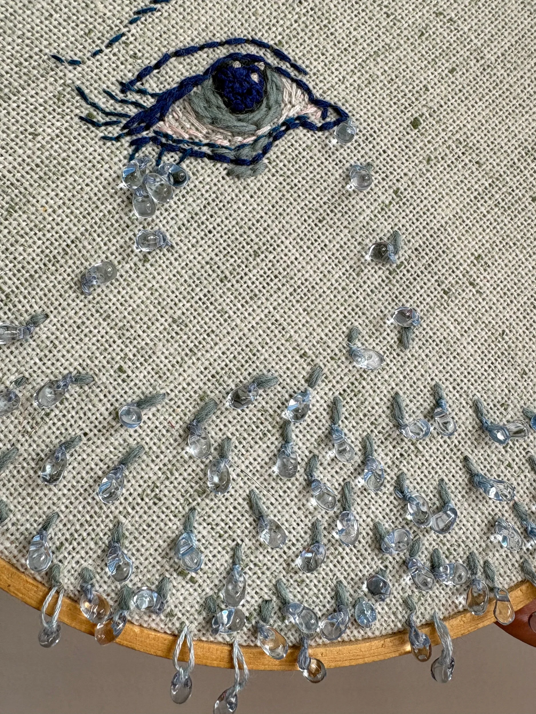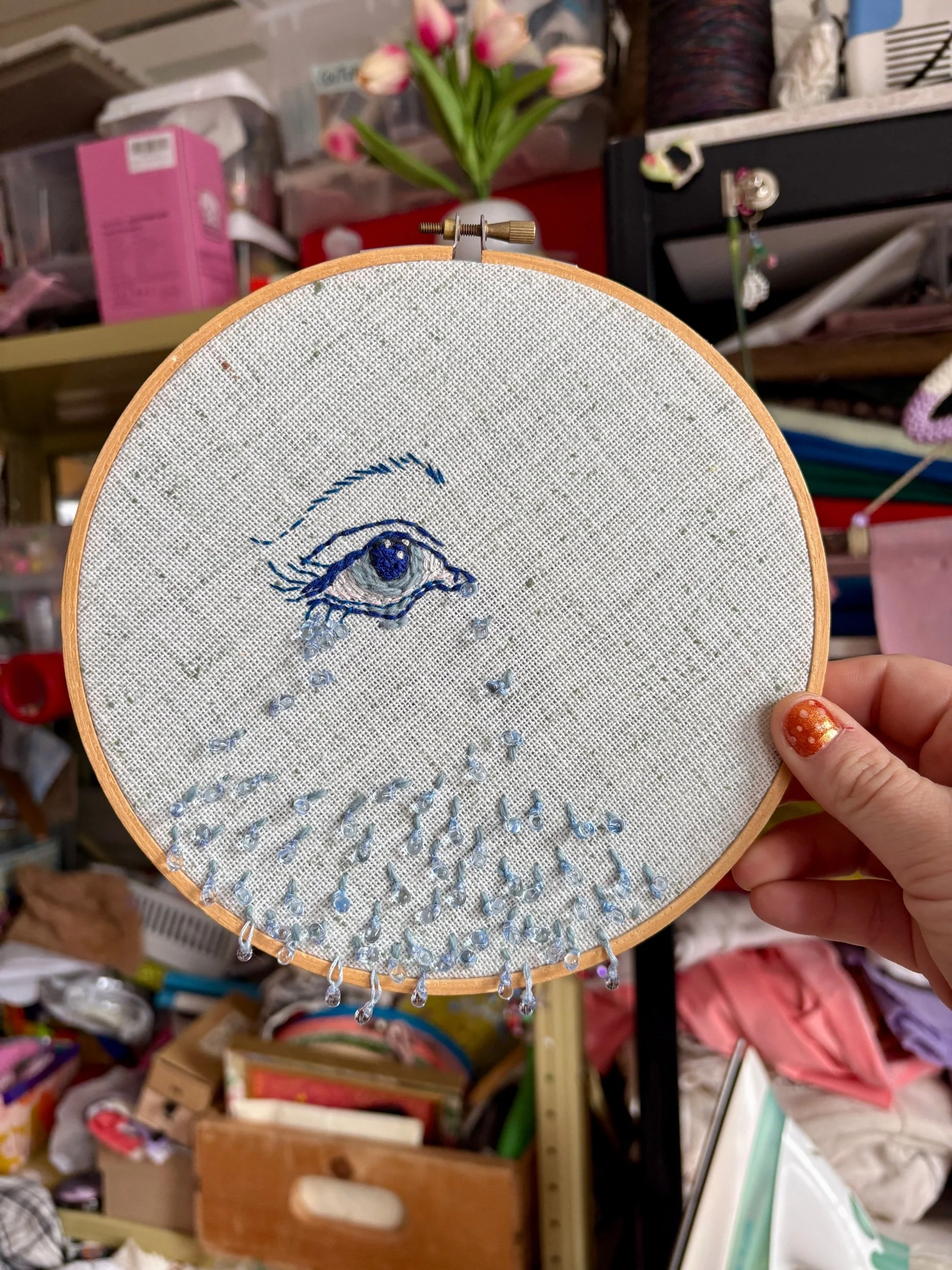 Cette broderie, réalisée avec mes petites mains de raton, a été confectionnée avec soin et douceur. Elle fait partie d’une longue série de journaux intimes où j’exprime, selon mon humeur, différentes facettes de mes réflexions et de mon cœur. Chaque œuvre est le fruit d’un élan sentimental ou d’une expérience vécue, qu’elle soit abstraite ou figurative. Dans cette démarche, l’unicité et la sincérité de chaque broderie sont essentielles. Je suis convaincue que les épreuves et les émotions, qu’elles soient les tiennes ou les miennes, résonnent toujours quelque part. Ces créations, une fois chez toi, seront là pour te rappeler qu’on n’est jamais vraiment seul face à ce que la vie nous fait traverser.
